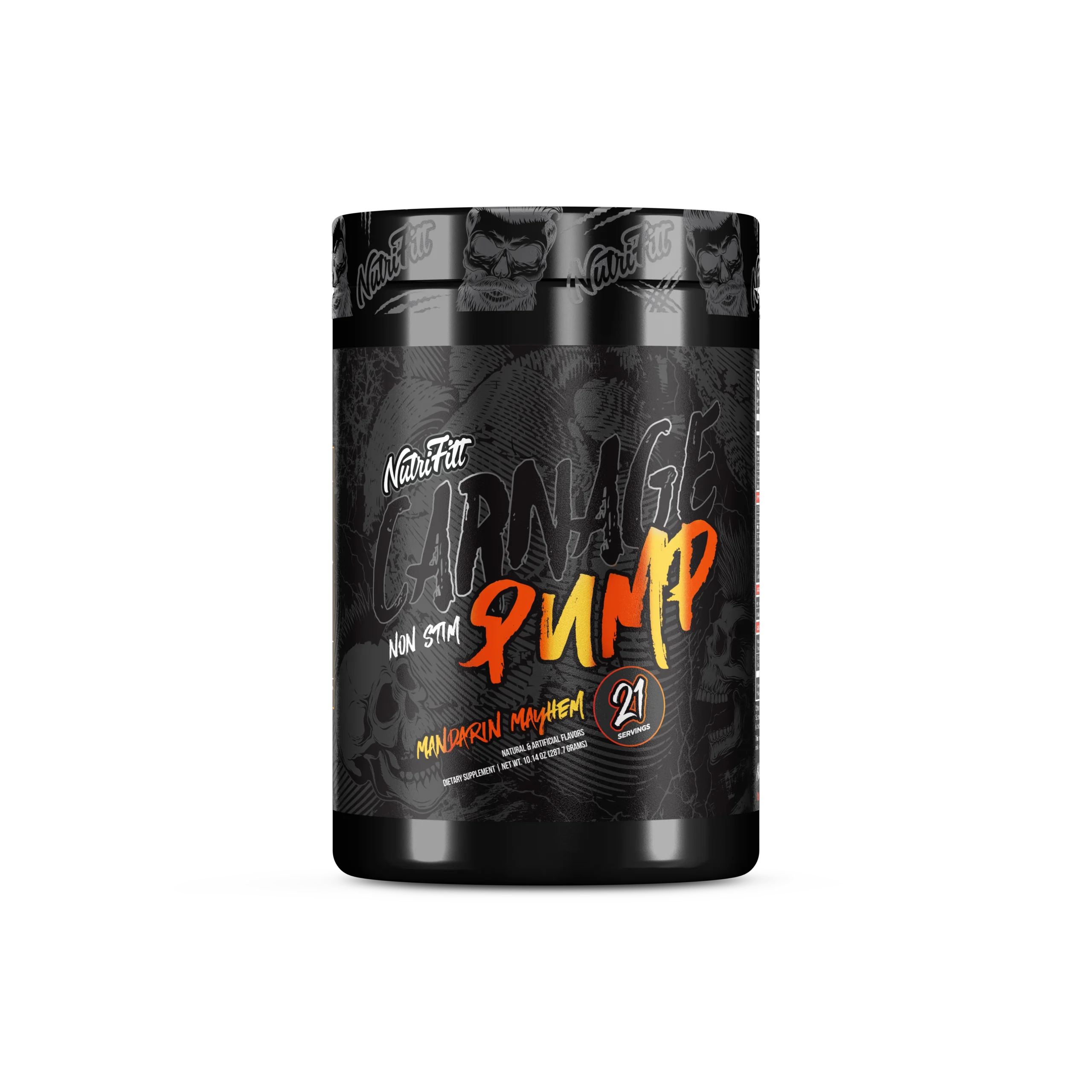 Carnage Pump es el pre-entreno definitivo para quienes buscan bombeos musculares masivos y un enfoque mental agudo sin el uso de cafeína o estimulantes. Diseñado para maximizar el flujo sanguíneo y la entrega de nutrientes al músculo.