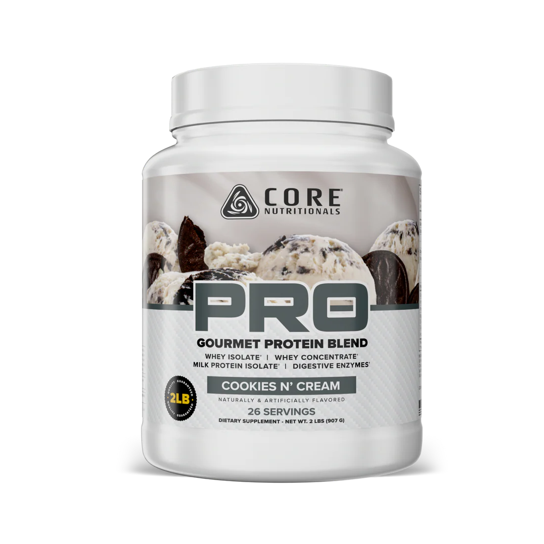 Mezcla de proteína de liberación sostenida — Core PRO está diseñado para ayudarte a recuperarte y alcanzar tus objetivos sin tener que tomar batidos pesados o de mal sabor. Su fórmula combina proteína de suero concentrada, aislado de suero y aislado de proteína de leche, ofreciendo una textura suave, digestión rápida y sostenida, y un perfil completo de aminoácidos.